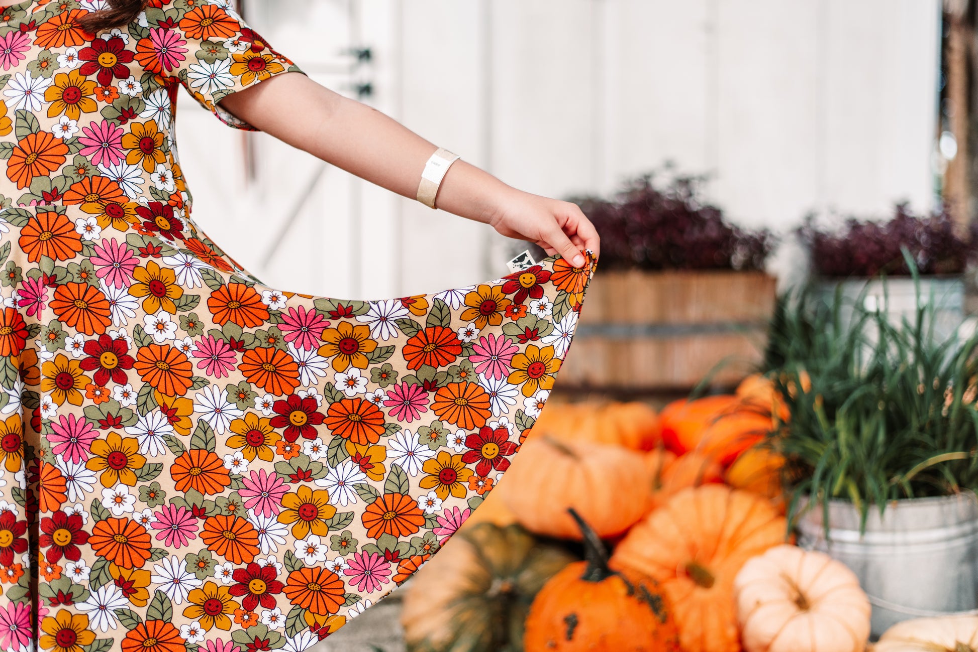 Made for spinning through the season in style, our Cotton Stretch Twirl Dress is as comfy as it is charming. Crafted from soft, breathable cotton with just the right amount of stretch, this dress moves with every twirl. The slight puff of the sleeves adds a touch of sweetness, while the beautiful fall floral print makes it picture-perfect for cozy days, family photos, and everything in between. Choose from short or 3/4 sleeves for the perfect fit all season long.